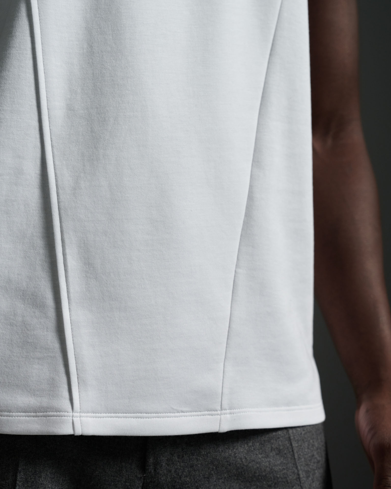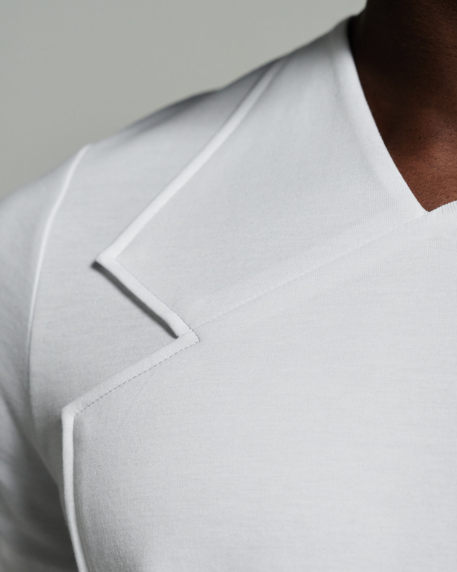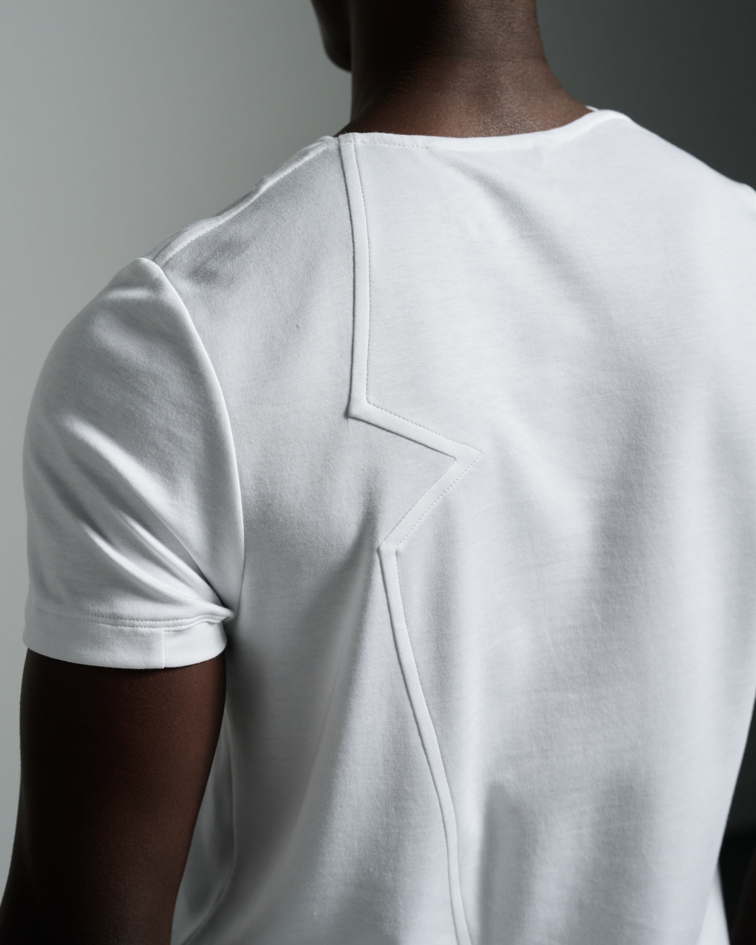 Back detail with contrast grey stitching, angled vents, short sleeves finished with rib on cuff.